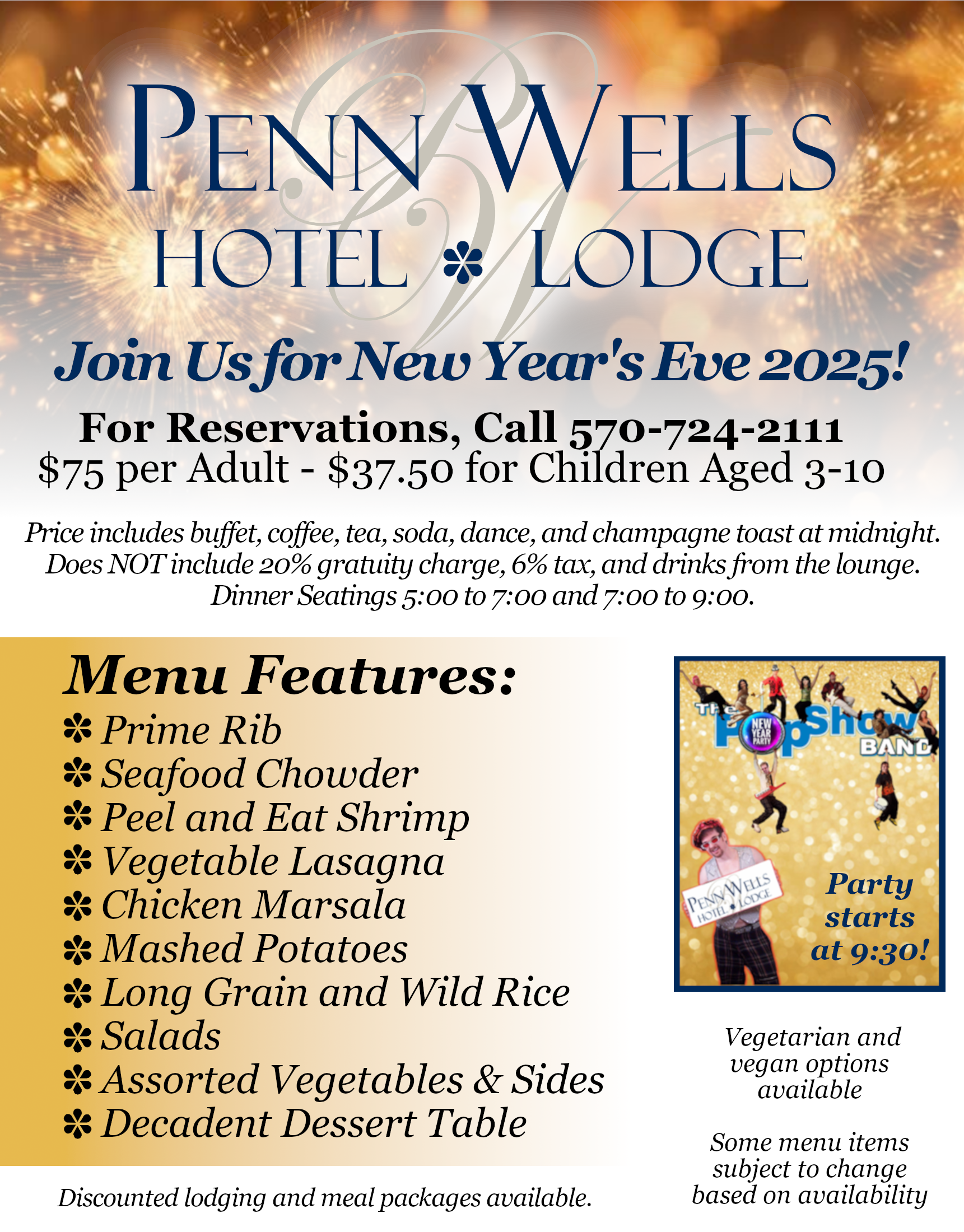 Throughout the year, the Penn Wells invites guests to enjoy a number of special meals at the Hotel restaurant, located just off the main lobby. Popular with locals and visitors alike, these holiday meals offer a relaxed fine dining experience perfect for extended families and friends. Guests get to focus on enjoying all of their traditional holiday favorites while letting the Penn Wells worry about the cooking and cleaning up.